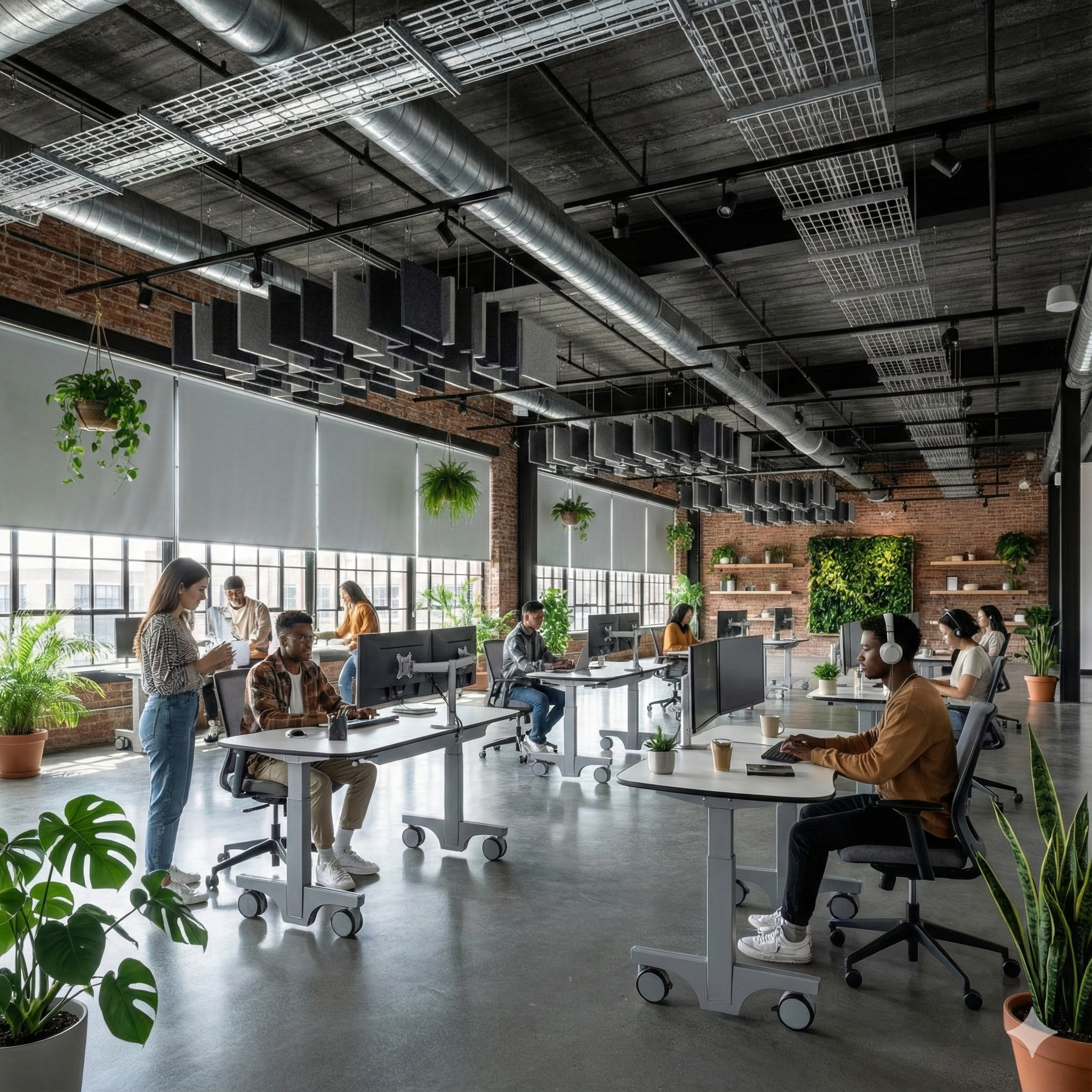 Mobile power solutions, such as the August Berres Juce, integrate high-capacity battery units into the furniture.9 These units can power multiple devices (MacBooks, displays, mobile whiteboards) for an entire shift, allowing furniture to be moved effortlessly across the floor.37