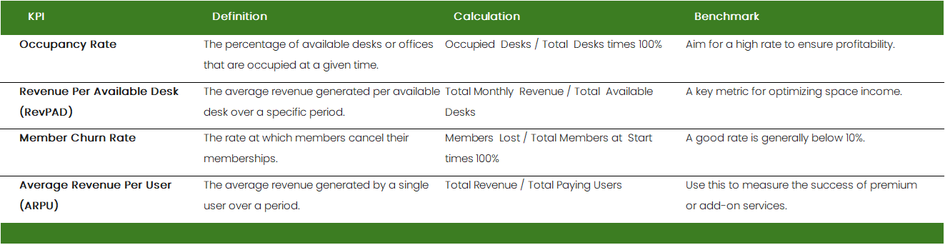Revenue Per Available Desk (RevPAD): This metric measures the average revenue generated per available desk and is a key indicator for optimizing the income potential of the space.7